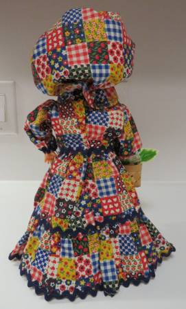 Vintage handmade soap bottle doll / figurine in excellent condition.Doll is 12" tall.Doll base is made with a weighted bottle of dish soap. ( no soap in bottle)